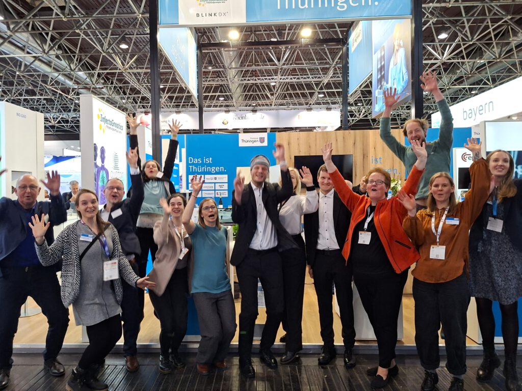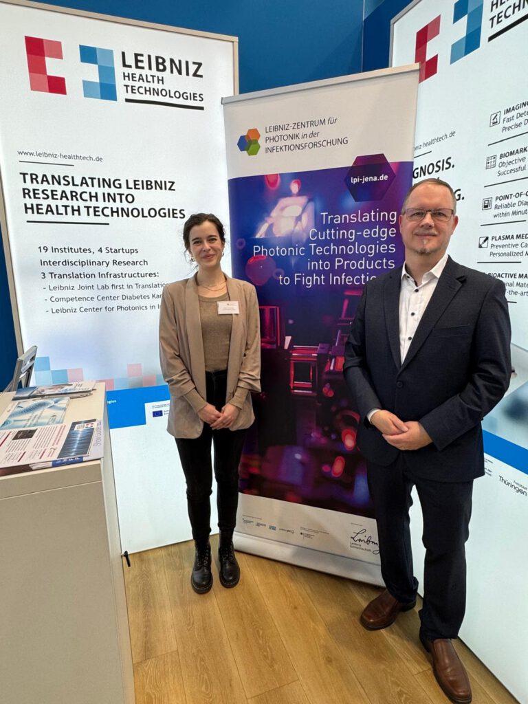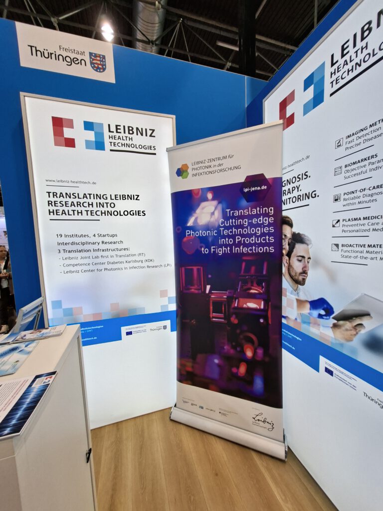 As one of the translation centers in the network of Leibniz Health Technologies, the LPI joined the booth of the Landesentwicklungsgesellschaft Thüringen mbH (LEG Thüringen). Many visitors of the trade fair came around, on purpose or by chance, allowing us to connect with people from the field and potential new partnerships. The primary focus was to inform about the LPI’s unique features of the First-in-Patient-Unit (FiPU) and the upcoming laboratory building. They play a central role in translating innovative photonic technologies to clinical applications – the goal of the LPI in fighting infections. The LPI wants to close this gap which is a barrier for many promising research projects and technologies: the transition from proof-of-concept to medical care. The LPI infrastructure is currently under development and starting in 2027, the FiPU will be available for initial point-of-care pilot studies.