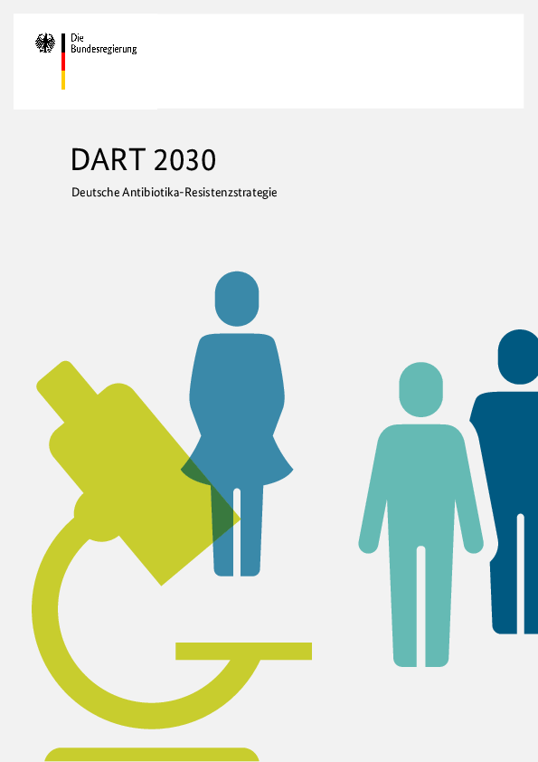 *) “DART 2030 – German Antimicrobial Resistance Strategy“, as at July 7, 2025, developed by the Federal Ministry of Health together with the Federal Ministry of Education and Research, the Federal Ministry of Food and Agriculture, the Federal Ministry for the Environment, Nature Conservation, the Nuclear Safety and Consumer Protection and the Federal Ministry for Economic Cooperation and Development. Read full text here.